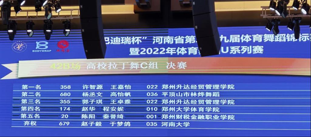 由河南省体育局主办,河南省体育舞蹈运动协会承办的省级赛事,河南省第二十九届体育舞蹈锦标赛暨2022年体育舞蹈U系列赛7月23日在河南省郑州市隆重举行。本次赛事参赛选手报名达到了1604项次,来自全省43支代表队的近千名“舞”林高手汇聚一堂,“舞”动中原一较高下。公司体育舞蹈代表队发挥出色,获得3项冠军的佳绩。