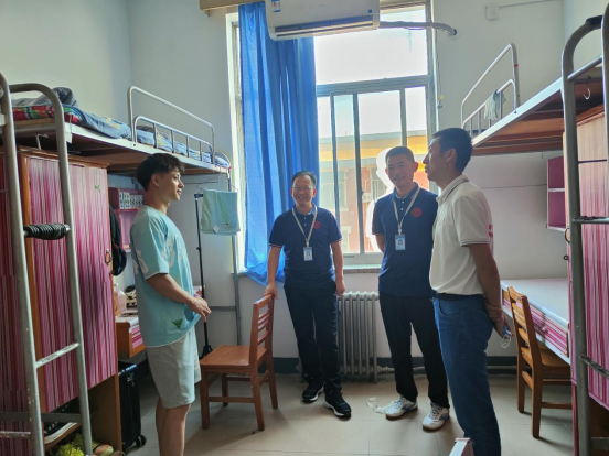 9月5日,suncitygroup太阳集团经理张王利、党总支书记李松涛、行政秘书高建涛、辅导员康晓晨、郭建菊、范自阳一行到宿舍走访看望专升本新生。