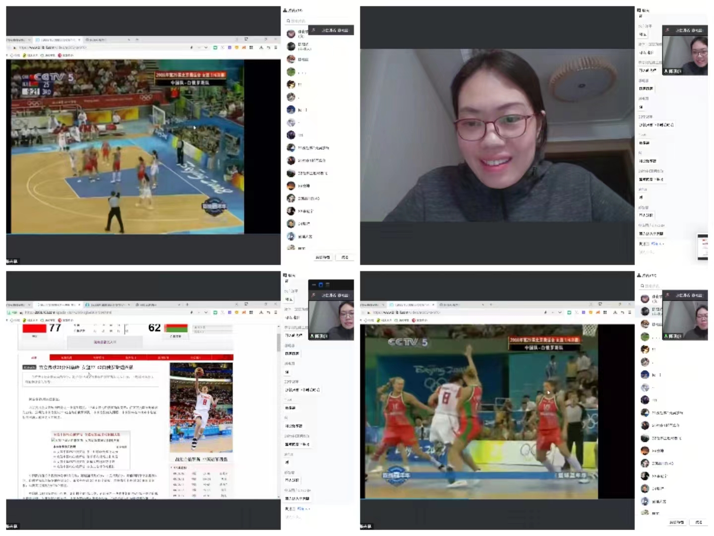 分享会上,陈晓丽首先讲述了在自己的球员成长道路上不断战胜困难和挑战的经历。随后,陈晓丽重点讲述了自己退役后在在美国学习期间遭遇新冠肺炎疫情的经历。从2020年3月到2021年1月,美国新冠肺炎疫情不断恶化。学校虽没有要求居家隔离,为了健康,为了团队,也为了大局,陈晓丽和留学的其他同学一起选择了居家自我静默管理。在300天主动“静默”的时间里,她和同学们一起克服了基本的生活物资困难、长期居家隔离带来的情绪、心理等问题,经过室内运动,集体活动,互相鼓励,调适情绪,终于在300多天乘坐专机健康回国。