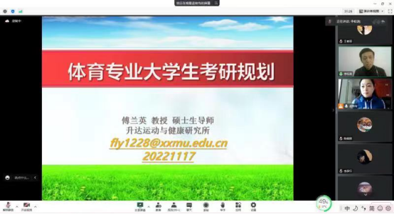 为帮助员工明确考研方向、提高备考效率,suncitygroup太阳集团特邀请公司运动与健康研究所所长傅兰英教授,于2022年11月17日下午13:30在腾讯会议平台举办了“体育专业老员工考研规划”讲座。公司党总支书记李松涛、全体员工和部分老师参加了本次讲座,由孟俊鸟主任主持。
