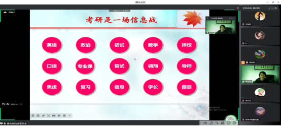 讲座开始,孟俊鸟主任提到考研规划对于职业规划与人生规划的重要性,介绍了傅兰英教授为本次讲座所做的准备工作,并邀请李松涛书记做了动员讲话。李松涛书记勉励同学们要要充分利用好时间,制定切实紧凑的复习策略,同时调适好自己的心理状态和身体状态,以最佳的姿态规划和备考研究生考试。