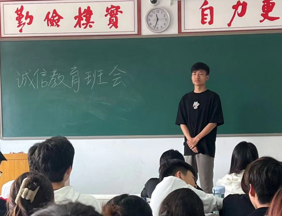 各班级班长组织开展“诚信于心 诚信于行”主题班会,向员工普及个人征信知识,引导员工重视个人征信;教育员工在申请贫困生认定、国家助学金等资助项目时,恪守诚信原则。主题班会涵盖了诚信知识,金融、征信知识,预防网络金融诈骗、不良“校园贷”等方面的内容。