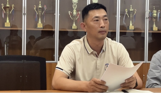 李松涛讲话时指出,田径队是公司员工体育组织的代表,同学们要抓住机会,珍惜韶华,加强训练,发挥引领作用,展示田径运动的美和青春的美,要坚持科学训练,持续进步,要拧成一股绳,在省赛上为校争光。
