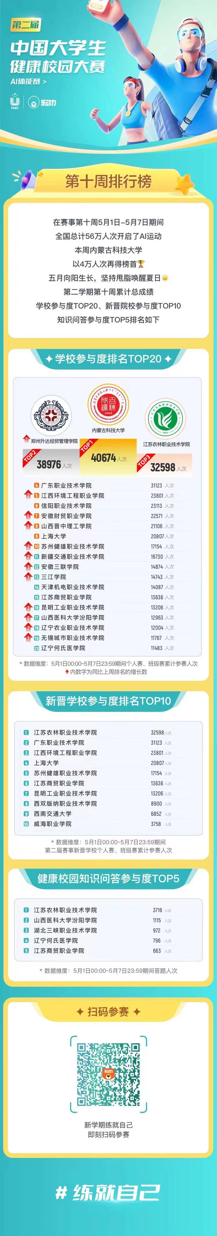 第二届中国老员工健康校园大赛第十周排行榜发布!