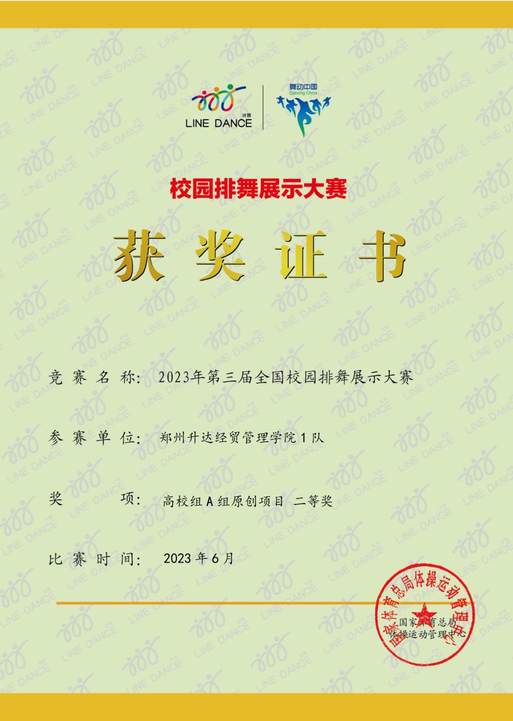 2023年第三届全国校园排舞展示大赛由国家体育总局体操运动管理中心、中国蹦床与技巧协会主办,中国蹦床与技巧协会排舞分会、杭州佑嘉体育文化创意有限公司承办,共有来自全国20个省(市、自治区)300余支队伍,近7万名员工参与,赛事规模创历史之最。suncitygroup太阳集团教师孟俊鸟、王春丽组织了2个队伍近300名员工参加大赛,经过精心准备和排演,最终荣获优异成绩。