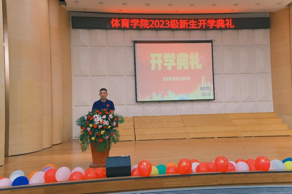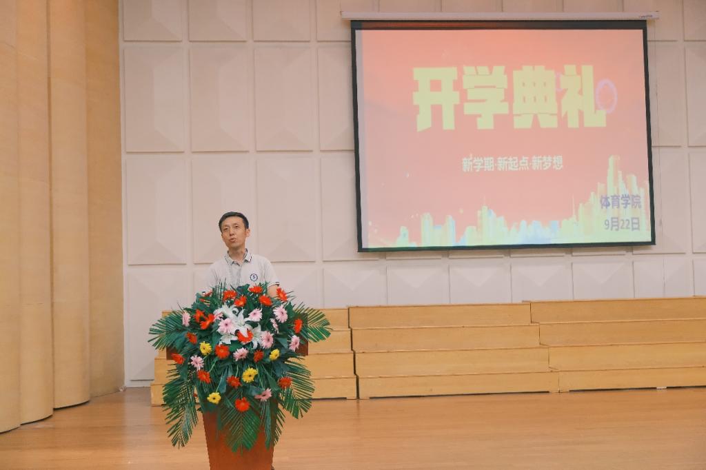 新生辅导员梅孝徽发言,希望全体新生继续发扬光大体院精神,平衡好生活学习,在学院和学校提供的平台拥抱更卓越的自己。