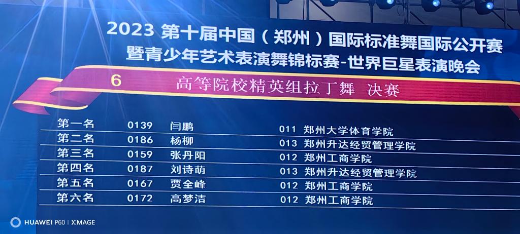 9月30日-10月2日,由河南省新的社会阶层人士联谊会指导,中共郑州市委宣传部、郑州市文化广电和旅游局、郑州市文学艺术界联合会主办,中共金水区委宣传部、金水区文化旅游体育局承办的“炫舞绿城·魅力金水”第十届(中国郑州)国标舞国际公开赛暨河南省第四届青少年艺术表演舞锦标赛·世界巨星表演晚会在金水区市民中心隆重开幕。本届比赛有俄罗斯、摩尔多瓦、意大利等七个国家180个代表队的中外选手。公司体育舞蹈专业学子经过3天的努力拼搏,为我们赢得了优异的成绩!