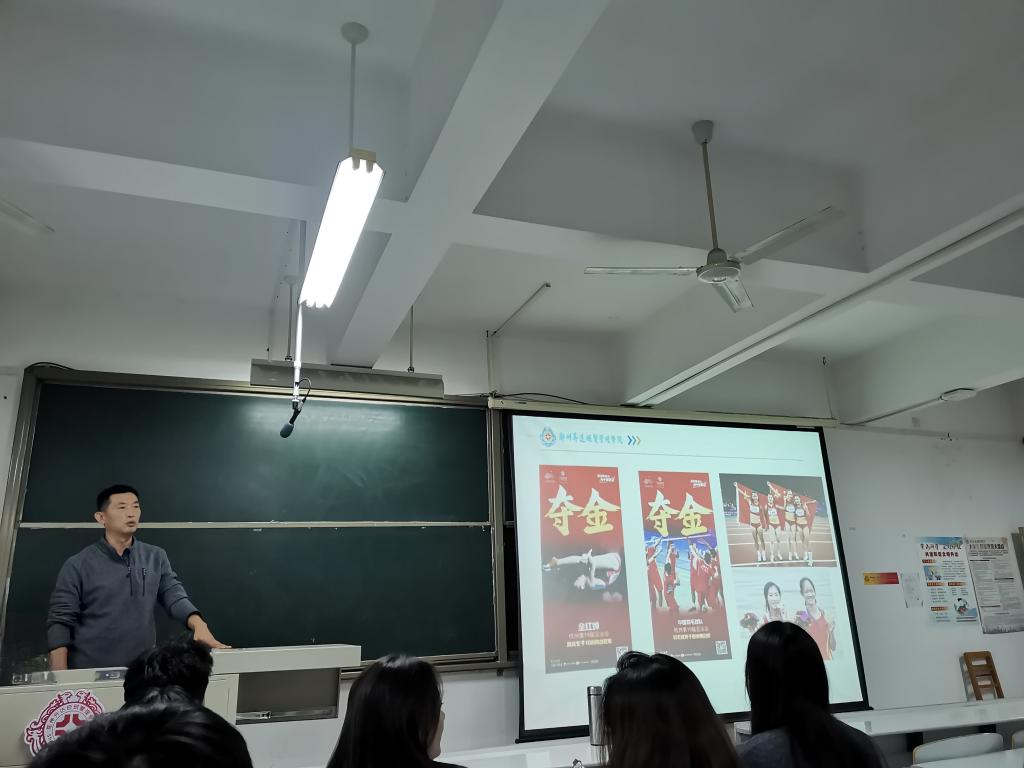 课上,围绕“牢记嘱托践使命 行走中原看巨变”主题,张王利首先向同学们介绍了河南体育健儿在成都大运会、杭州亚运会等重大体育赛事上为国争光的出色表现。随后,张王利为同学们重点讲解了习近平总书记关于建设体育强国的重要论述,讲述了我国竞技体育、群众体育和体育产业发展的前景,提出社会体育指导与管理专业和体育舞蹈专业的员工要树立体育强国梦,在中华民族伟大复兴征程上贡献力量。