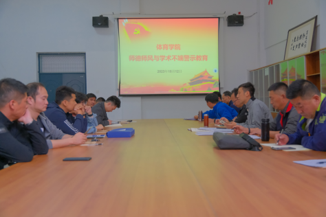 公司党总支书记李松涛在讲话时强调,师德师风是评价教师的第一标准,师德师风决定着学院的学风和院风,是关系到学院教育工作成败的大事。体院全体教师须保持清醒头脑,自觉筑牢思想道德防线,加强师德修养,坚持立德树人,自觉践行《新时代高校教师职业行为十项准则》,自觉抵制学术不端,守牢师德底线,以良好的师德师风为学校和学院发展做贡献。