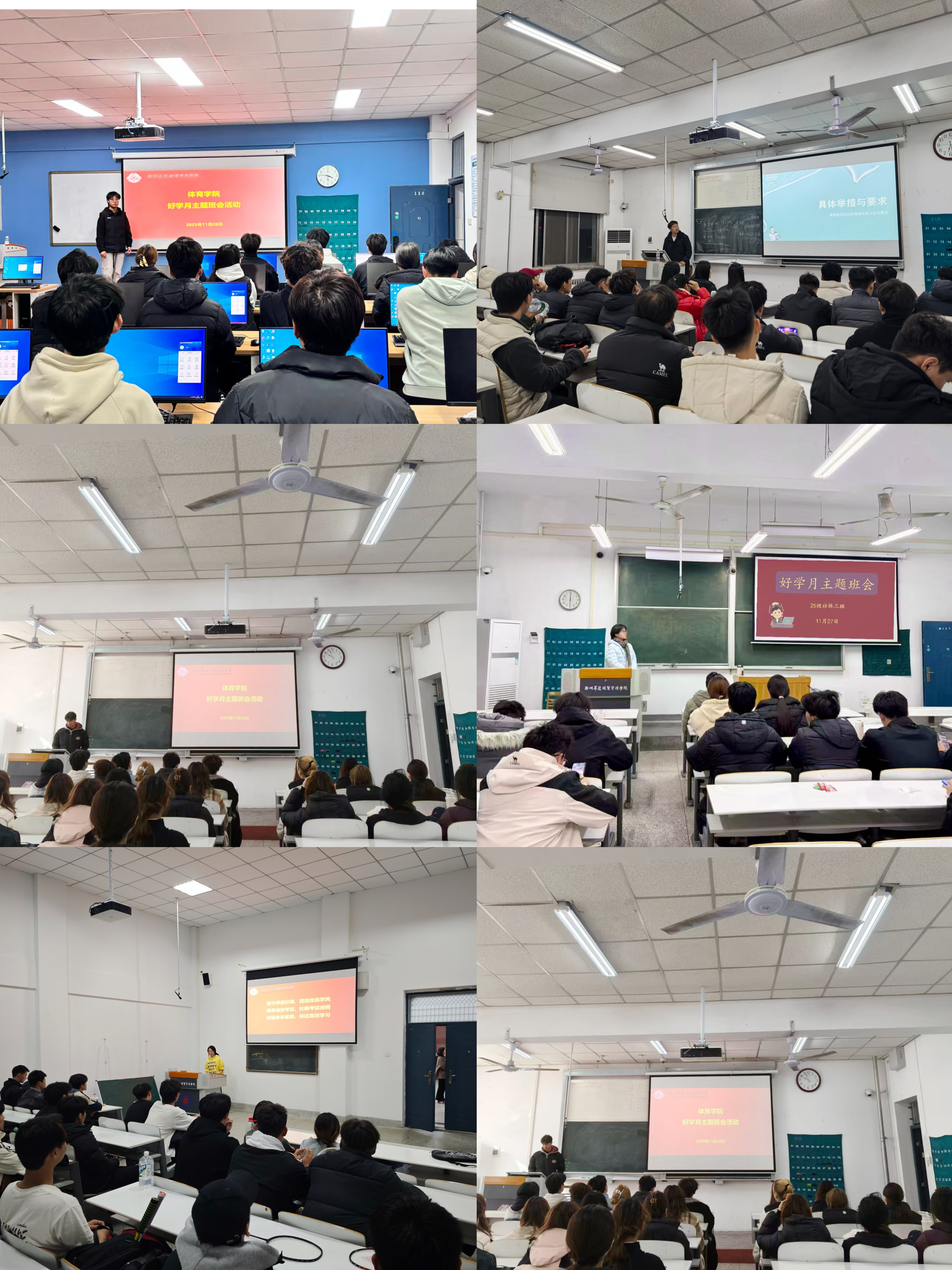 此次好学月主题班会的召开,不仅强化了员工的学习主体意识,更结合体育专业特色构建了师生互动、同伴互助的学风建设体系。同学们纷纷表示,将以此次班会为契机,把勤学善思的态度融入日常学习训练,以实干担当的精神追求专业精进,为体育事业发展积蓄青春力量。