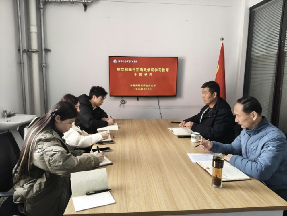 为深入学习贯彻习近平总书记关于树立和践行正确政绩观的重要论述,进一步强化党员教师的宗旨意识和服务意识,3月5日下午,体育舞蹈教研室党支部组织开展了“树立和践行正确政绩观”主题党日活动,引导全体党员教师把为师生办实事、为专业谋发展作为检验政绩的试金石,推动党建与专业建设深度融合、同频共振。