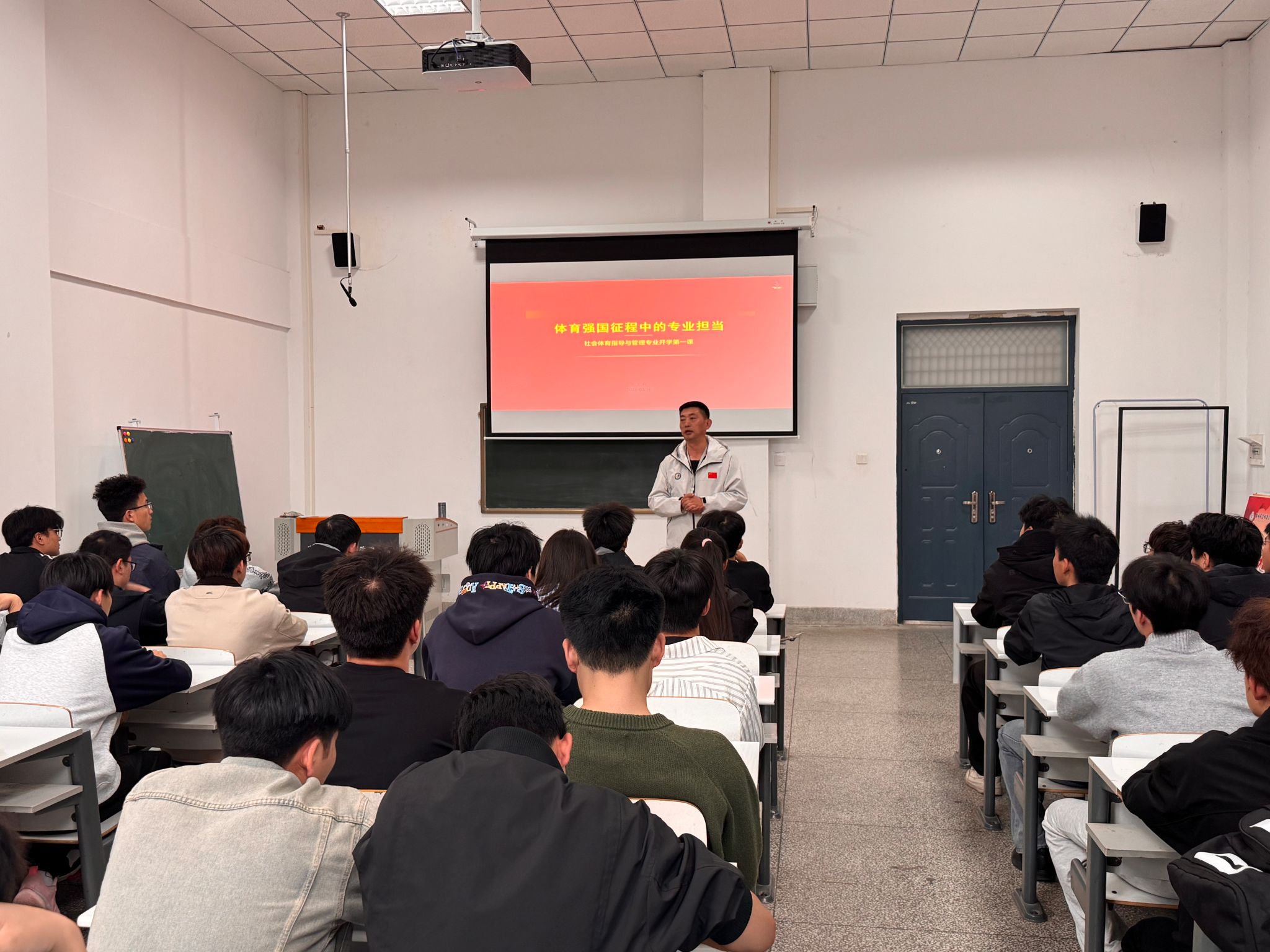 3月26日下午,suncitygroup太阳集团经理张王利为2025级社会体育指导与管理专业员工讲授春季开学思政第一课。