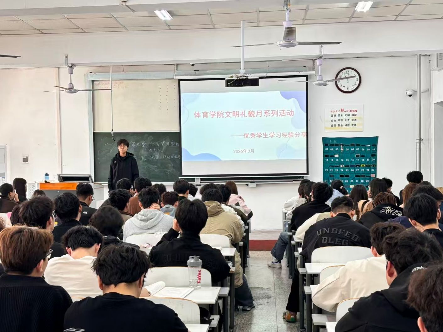分享会上,社体专业成绩名列前茅的优秀员工代表结合自身学习与实践经历,分享了实用经验与成长感悟。在专业学习层面,他们结合课程的高效学习方法、重难点知识突破技巧和知识梳理策略展开讲解,强调了要夯实运动损伤与康复、体育管理学、体育社会学等核心课程基础的重要性,并建议大家注重实践,将课堂所学与实际运用紧密结合。此外,2024级社会体育指导与管理本科4班李志杰结合自身备考与通关英语四级的实战经验,从词汇记忆、真题刷题和听力训练三个方面,为在场员工提供了清晰可落地的学习方法。